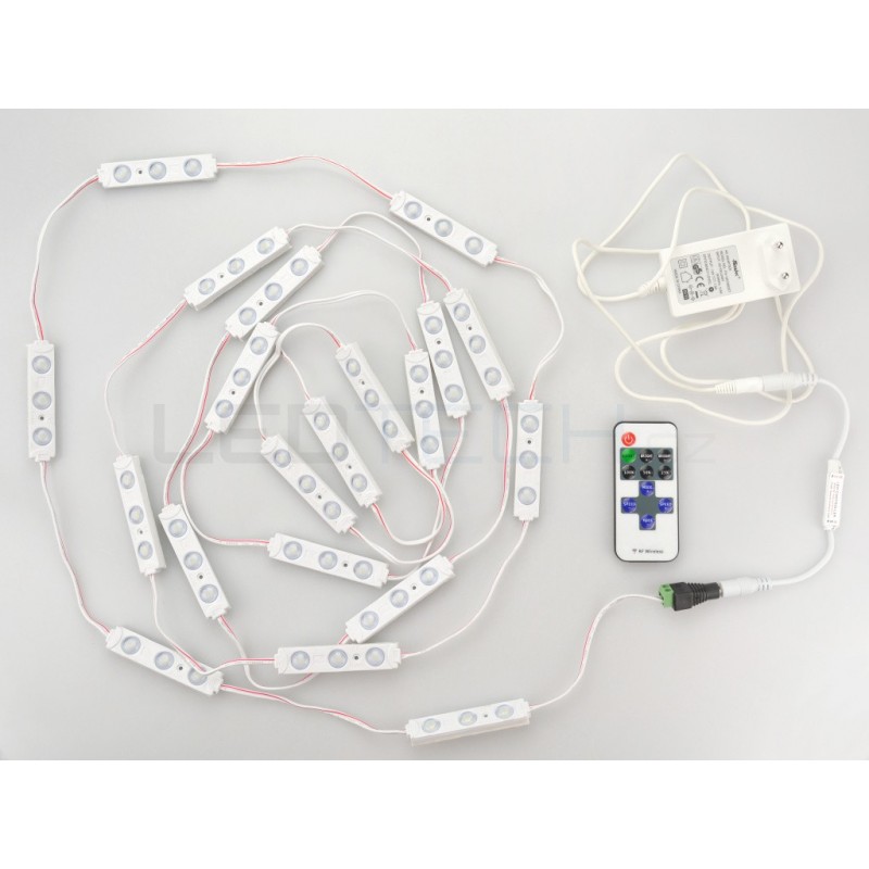 Sada typu plug and play - rozbalíte, zasunete konektory, připevníte pásky a ihned svítíte.