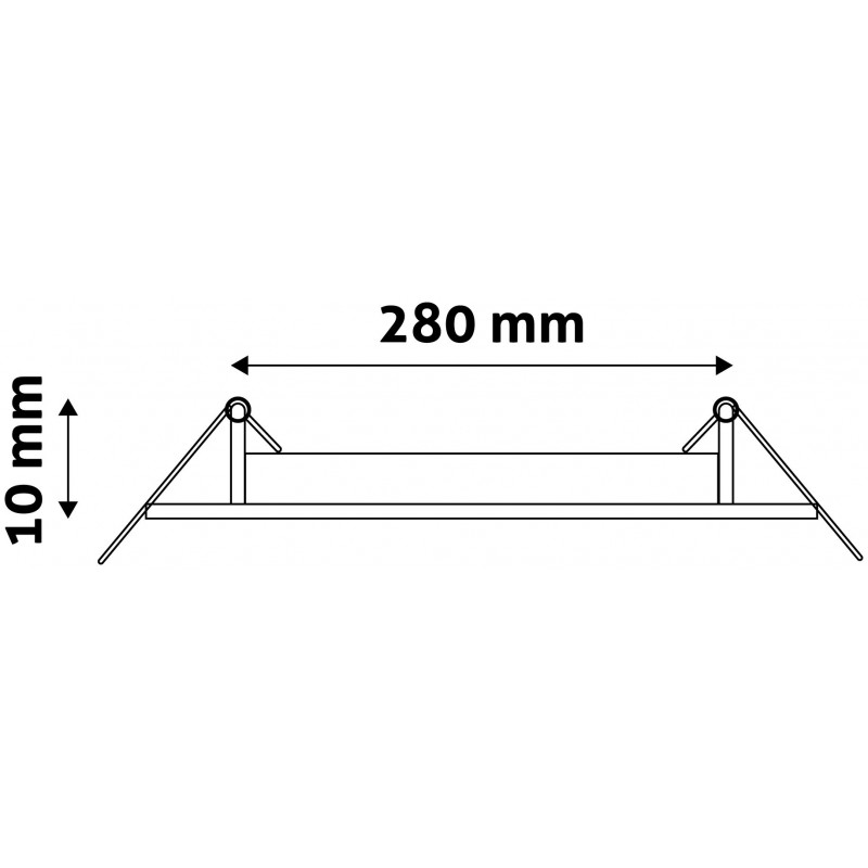 Čtvercový zápustný panel s LED páskem po boku, ultratenký design, nestmívatelný zdroj a sada pružinek součástí balení.