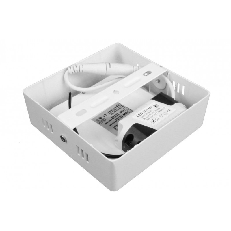 Čtvercový přisazený mini LED panel 6W. Díky bočnímu nasvětlování nejsou jednotlivé LEDky při rozsvícení viditelné.