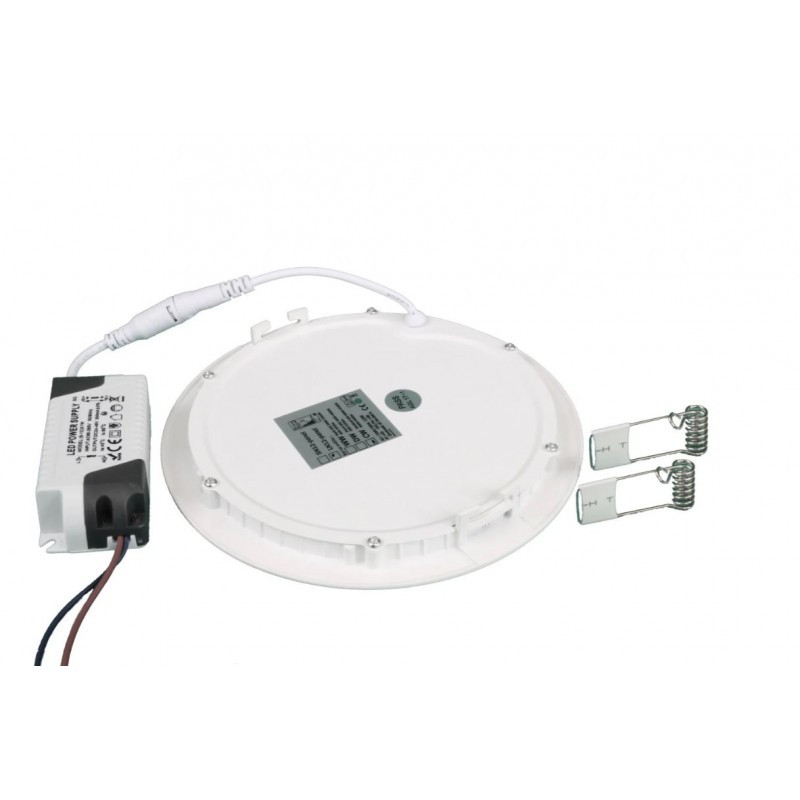 Kulatý ultratenký mini LED panel 12W. Díky bočnímu nasvětlování nejsou jednotlivé LEDky při rozsvícení viditelné a lze použít i ultratenký design. Součástí balení je nestmívatelný zdroj pro napájení panelu a sada 2 pružin pro instalaci do podhledu.
