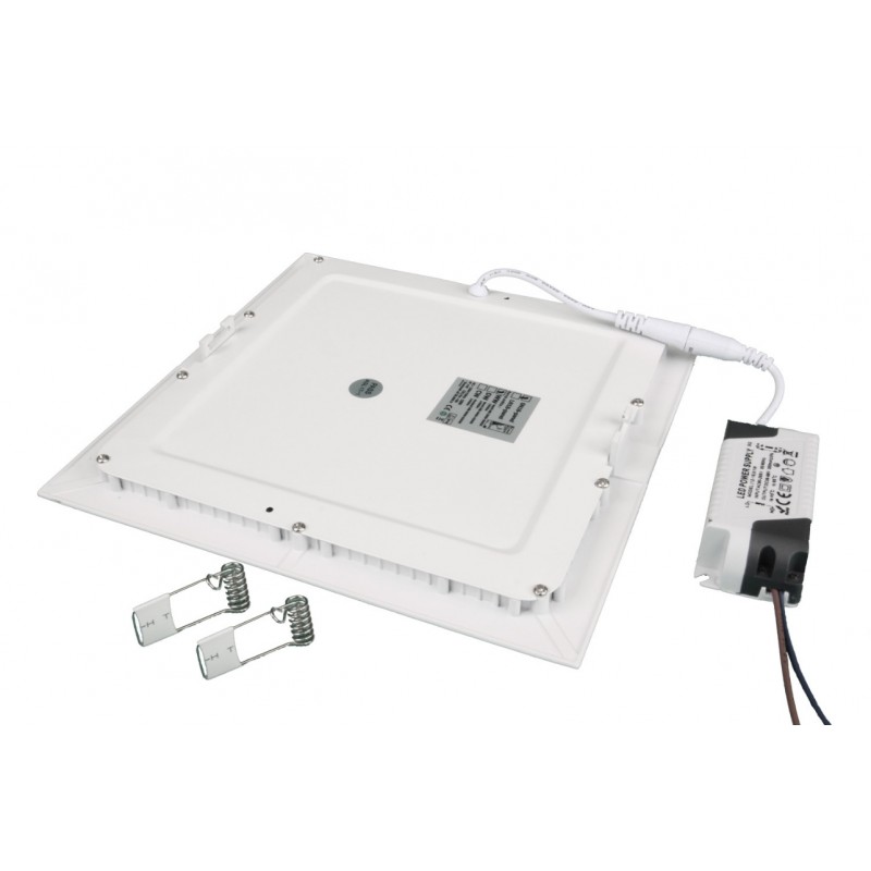 Čtvercový ultratenký mini LED panel 18W. Díky bočnímu nasvětlování nejsou jednotlivé LEDky při rozsvícení viditelné a lze použít i ultratenký design. Součástí balení je nestmívatelný zdroj pro napájení panelu a sada 2 pružin pro instalaci do podhledu.