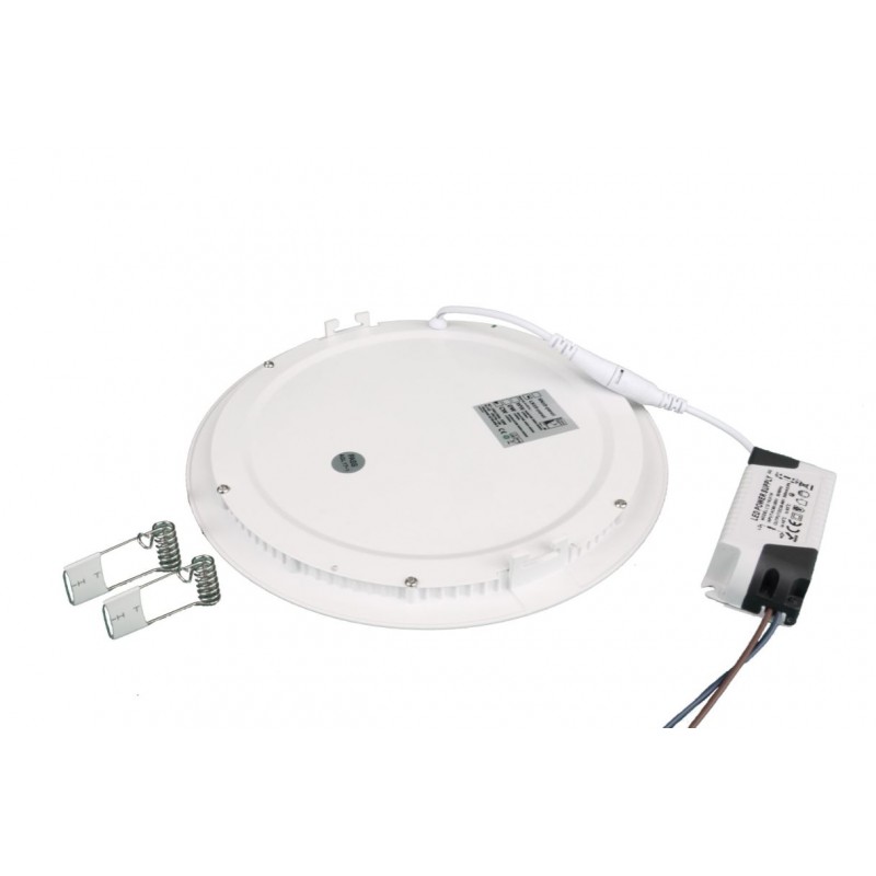 Kulatý ultratenký mini LED panel 18W. Díky bočnímu nasvětlování nejsou jednotlivé LEDky při rozsvícení viditelné a lze použít i ultratenký design. Součástí balení je nestmívatelný zdroj pro napájení panelu a sada 2 pružin pro instalaci do podhledu.
