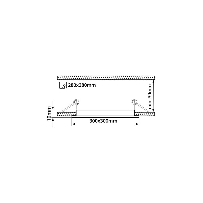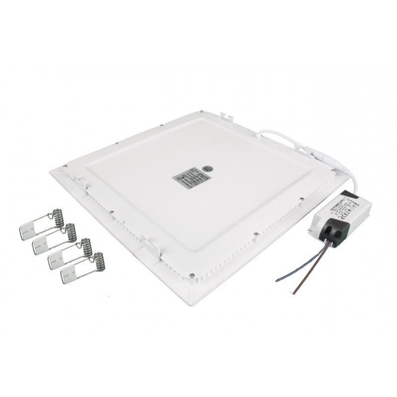 Čtvercový ultratenký mini LED panel 24W. Díky bočnímu nasvětlování nejsou jednotlivé LEDky při rozsvícení viditelné a lze použít i ultratenký design. Součástí balení je nestmívatelný zdroj pro napájení panelu a sada 2 pružin pro instalaci do podhledu.