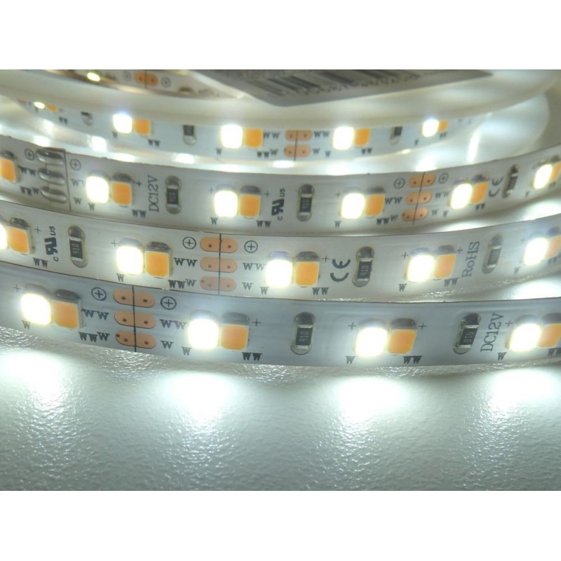 V základu jsou na LED pásku vložené 2 druhy diod ve variantě teplá a studená bílá. Ovladačem můžete obě barvy nezávisle zapínat, vypínat a stmívat. Při spuštění obou barev najednou dojde ke sloužení obou barevných teplot a výchozí barva je zhruba okolo 4500K.