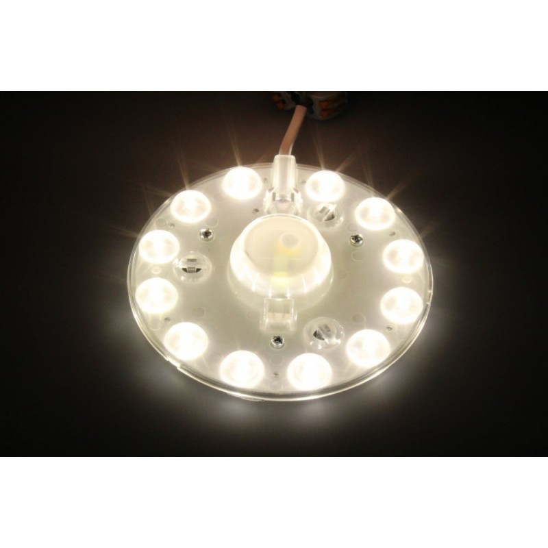 Magnetický LED modul je určený pro modernizaci stropních svítidel. Rychlá a snadná instalace spořívá v odstranění starých světelných zdrojů (například patic E27) a uchycením na kovový povrch svítidla třemi magnety, které jsou již integrované na LED modulu. Z bezpečnostních důvodů svěřte montáž odborníkovi.