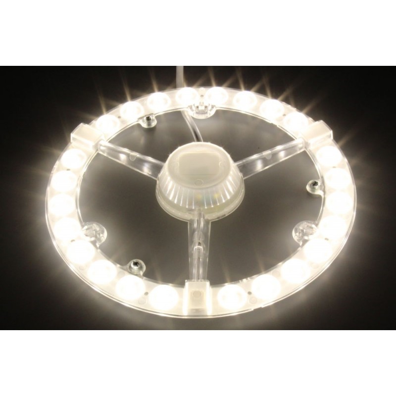 Magnetický LED modul je určený pro modernizaci stropních svítidel. Rychlá a snadná instalace spořívá v odstranění starých světelných zdrojů (například patic E27) a uchycením na kovový povrch svítidla třemi magnety, které jsou již integrované na LED modulu. Z bezpečnostních důvodů svěřte montáž odborníkovi.