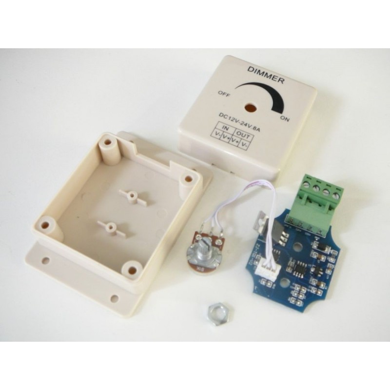Stmívač jednokanálový manuální pro ovládání intensity jasu LED světelných zdrojů na 12-24VDC - pásků, žárovek, jednobarevných modulů.