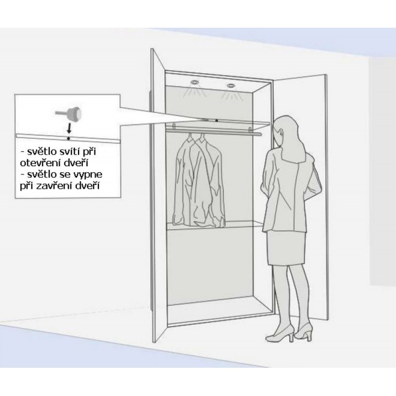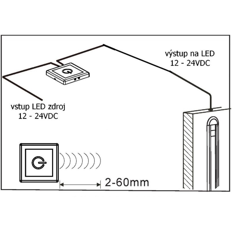 Spínač skříňový s IR senzorem pro skříně či zásuvky s vitřním osvětlením k zapnutí a vypnutí jakéhokoliv světelného či jiného zařízení a provozním napětím 12-24VDC