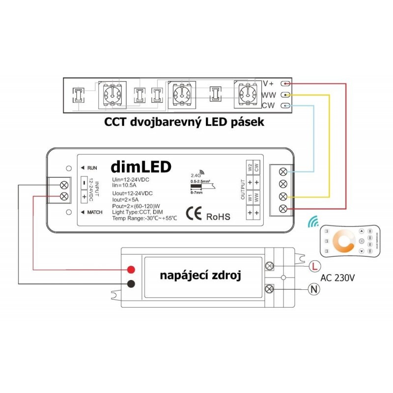Přijímač je kompatibilní se všemi CCT ovladači řady dimLED !!!