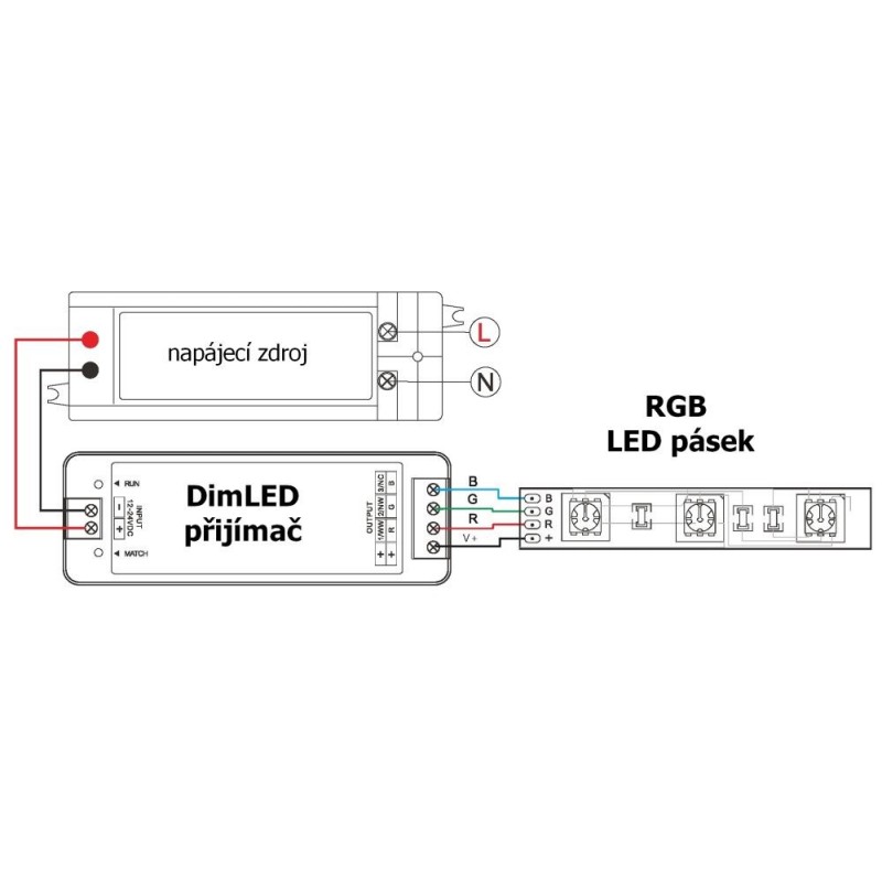 Přijímač je kompatibilní s RGB ovladači řady dimLED !!!
