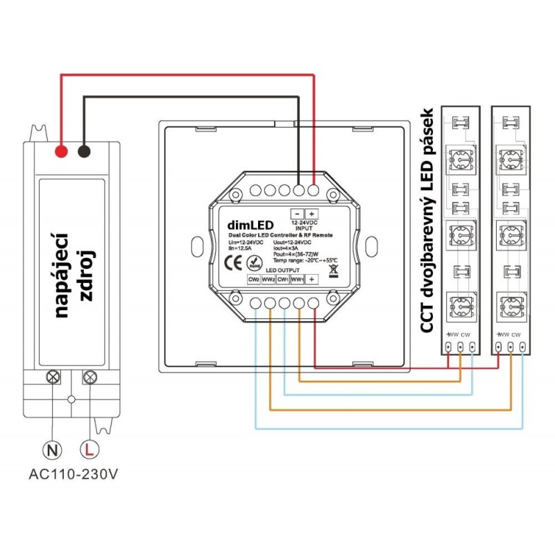 Nástěnný LED stmívač OV DUPLEX CCT 2K, dálkové RF (radiofrekvenční) ovládání