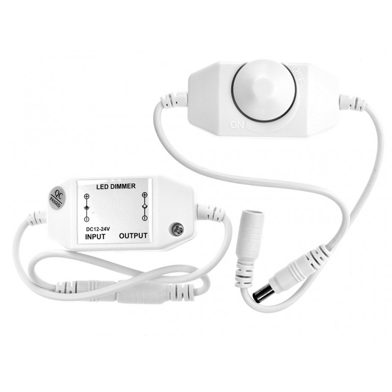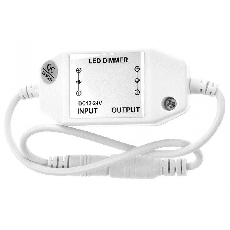Stmívač jednokanálový manuální pro ovládání intensity jasu a vypínačem LED pásků, žárovek 12V a jednobarevných modulů.