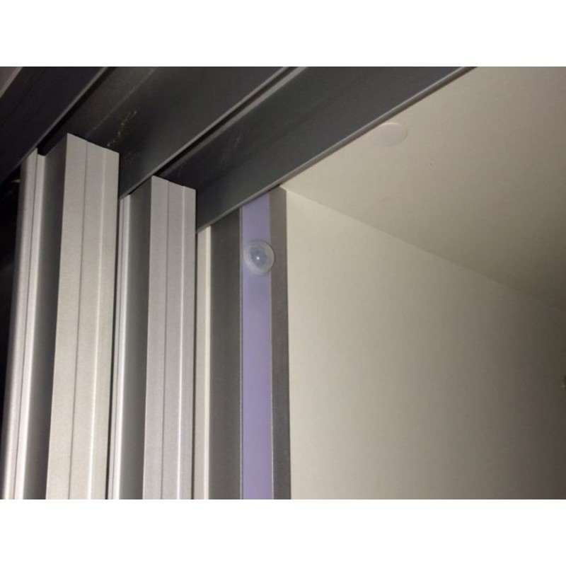 Jiné systémy detekce otevření dvířek pracují na kontaktním principu, nebo vyžadují instalaci senzoru v blízkosti dvířek. Pohybový senzor se instaluje přímo do lišty s LED páskem a a není nutný žádný jiný zásah do nábytku. Instalace je tedy jednonuchá a není potřeba nic jiného než napájecí kabel pro LED pásek.