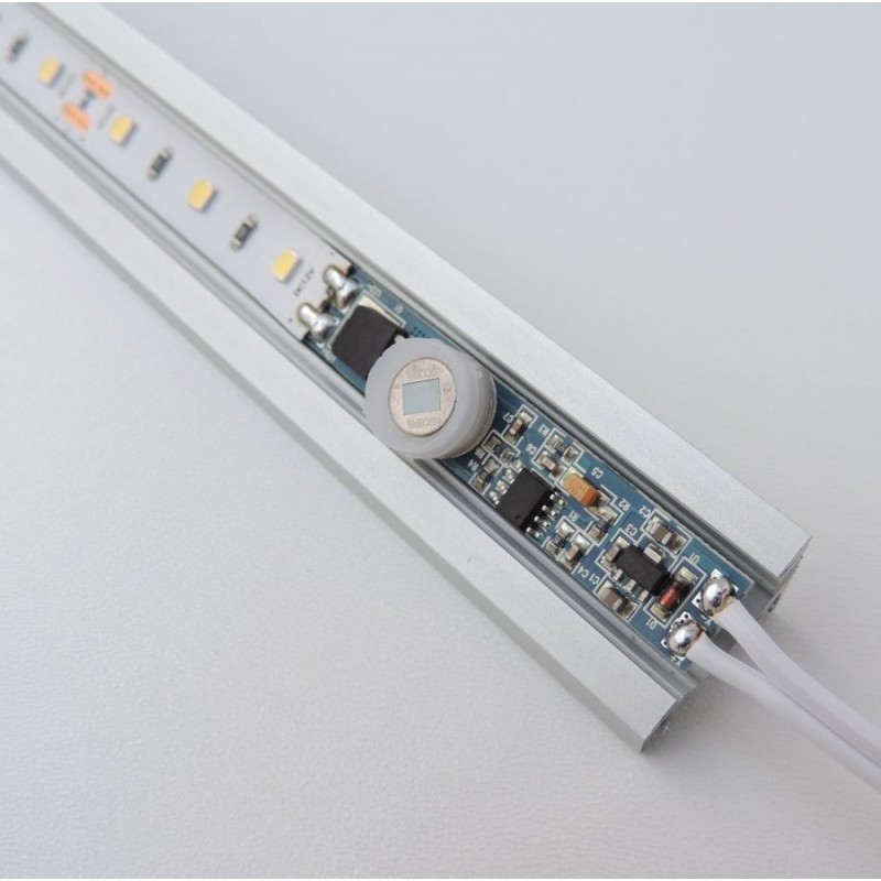 Pohybový spínač do profilu, 12-24V DC, 2A. Doba sepnutí je regulovatné pomocí potenciometru 6-70 sekund a dosah senzoru je 2 metry. Senzor je určený na instalaci do hliníkových profilů, které slouží jako chladiče pro LED pásky.