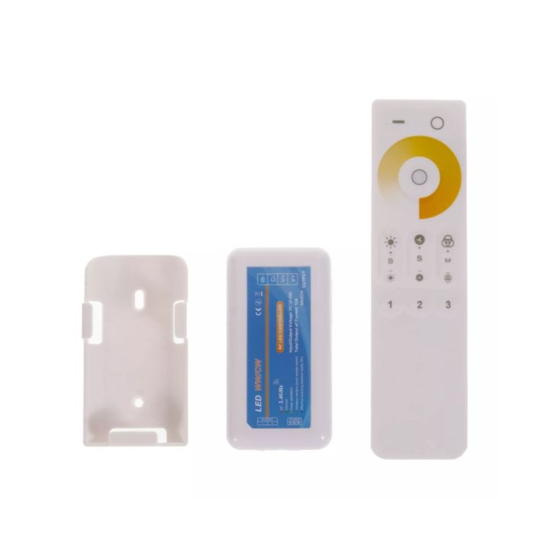 CCT LED ovladač 3kanálový RF (radiofrekvenční) pro dálkové ovládání intensity jasu CCT LED pásků, modulů a dalších 12-24V CCT LED produktů. Přijímač může být ukrytý (za zdí, sádrokartónem či ve skříni), není nutná přímá viditelnost přijímače pro ovladač. LED ovladač Largo umožňuje ovládat až 3 zóny samostatně. Pokud chcete ovládat více zón, je nutné zakoupit další sadu ovladače Largo, u tohoto modelu se přijímače samostatně neprodávají.