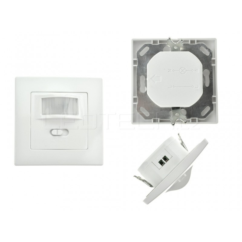 PIR pohybové čidlo pro instalaci do krabičky, které snímá pohyb na základě tepelného záření, jenž vyzařuje tělo v infračervené části spektra. Čidlo má vypínač, který umožňuje přepnutí ZAPNUTO-VYPNUTO-FUNKCE ČIDLA.