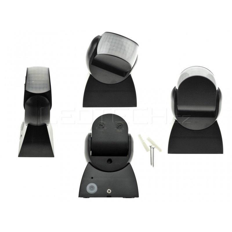 Infračervené pohybové čidlo, úhel záchytu 180°, dosah až 12 metrů, možnost nastavit dobu sepnutí v rozmezí 10s - 7min, regulace citlivosti na okolní světlo 3-2000lx.