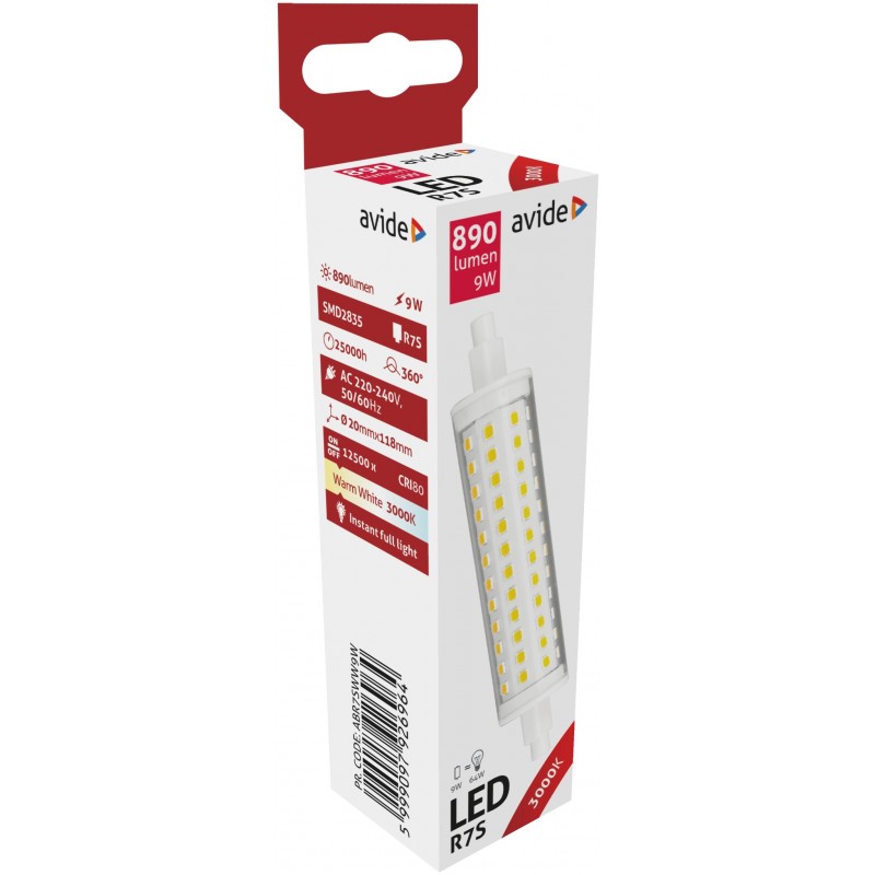 LED žárovky s paticí R7S, úhel svitu 360˚, 9W, 230V, náhrada 65W halogen