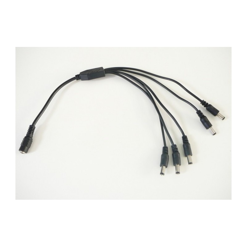 DC rozbočovač s 5 výstupy. Rozměr 2,1/5,5mm. Délka 40cm. Maximální zatížení 5A na vstupu, 1A na jednotlivých výstupech rozbočovače.