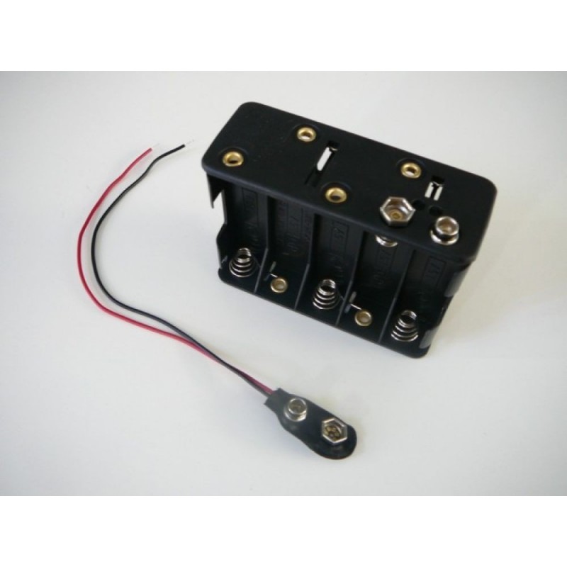 Držák baterií 10xR6/AA/UM3 (tužkový monočlánek) pro LED pásky 12V, včetně připojovacího kabelu 12cm s konektorem.