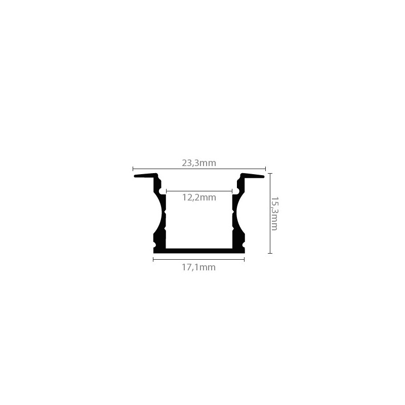 Vestavný hliníkový profil (lišta) pro LED pásky, s povrchovou eloxovanou úpravou. Tyto profily se nejvíce používají k montáži do kuchyní, nábytku nebo na místa, kde chcete, aby váš LED pásek získal nový rozměr a design, zároveň slouží jako chladič LED pásku.